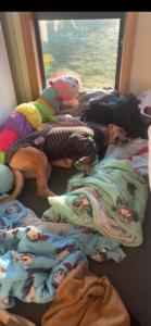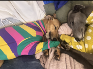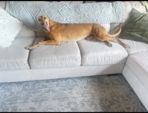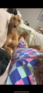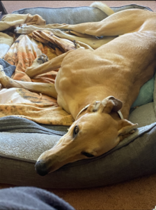 She’s very friendly with other dogs although she will steal their toys, she loves the humans beds but does have some mild sleep startle so perhaps her own bed is the best option. She will happily share that with another dog.